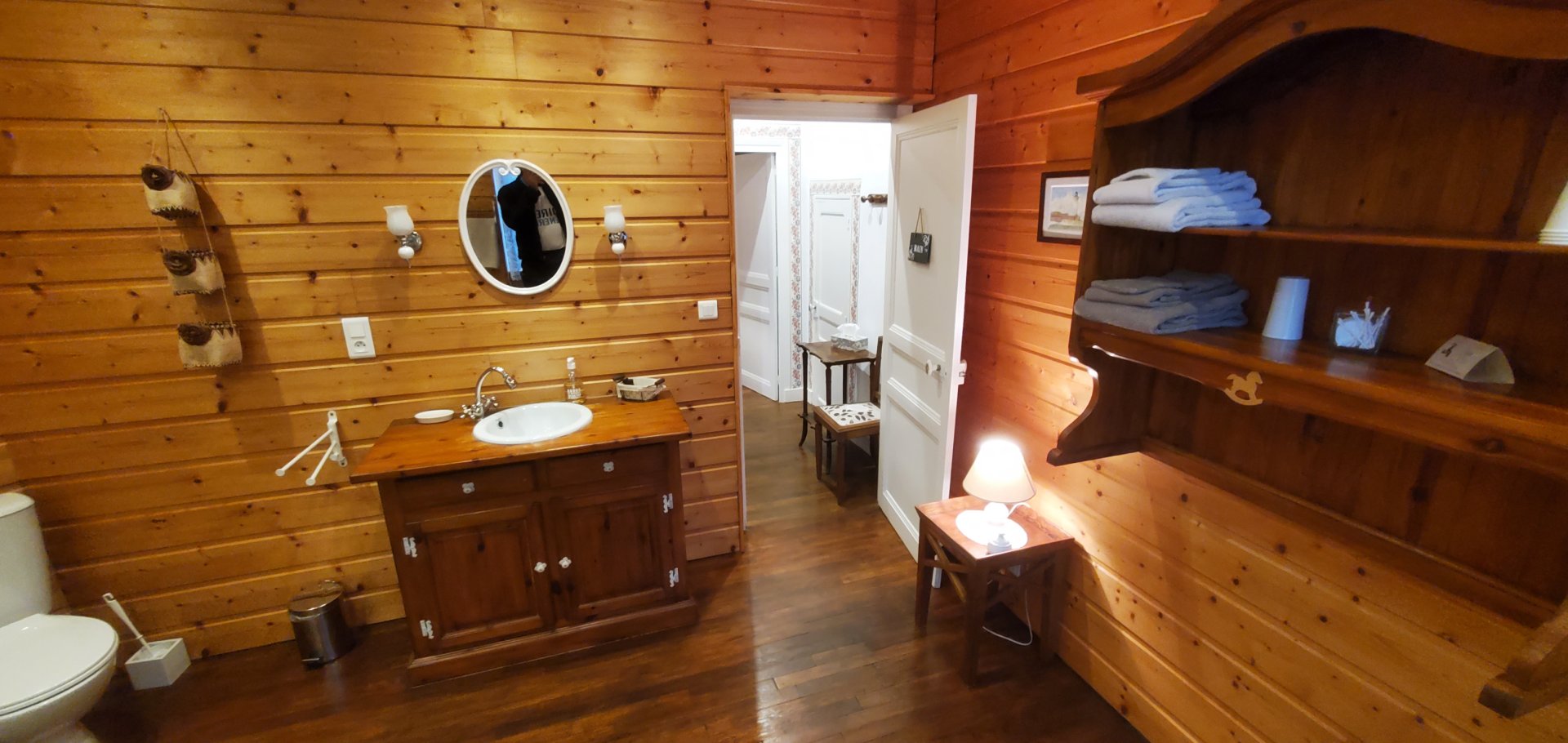 Au 2ème étage : la chambre « La Meunière d'en Haut » avec un lit 120x190 et un lit 130x190, attenante, une immense salle d'eau avec douche multijet et WC.