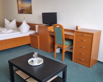 Rooms at Müritz-Pension Waren are simply furnished with wooden furniture. All rooms include a TV, refrigerator and a private bathroom with shower.