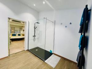 Cette chambre d'hôtes avec climatisation compte un coin salon, une cuisine avec un réfrigérateur et une télévision à écran plat. Des serviettes et du linge de lit sont à disposition.