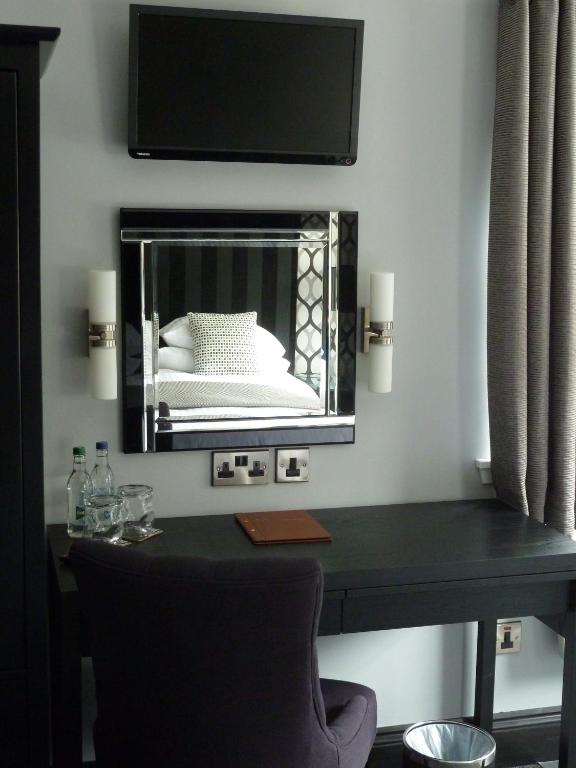 The Single Deluxe room has a double bed, is situated on the first floor level and has a large window overlooking the private enclosed rear garden. featuring a comfortable bed, luxury linen, Smart TV and Tea/Coffee facilities.Modern ensuite bathroom and Scottish Toiletries.