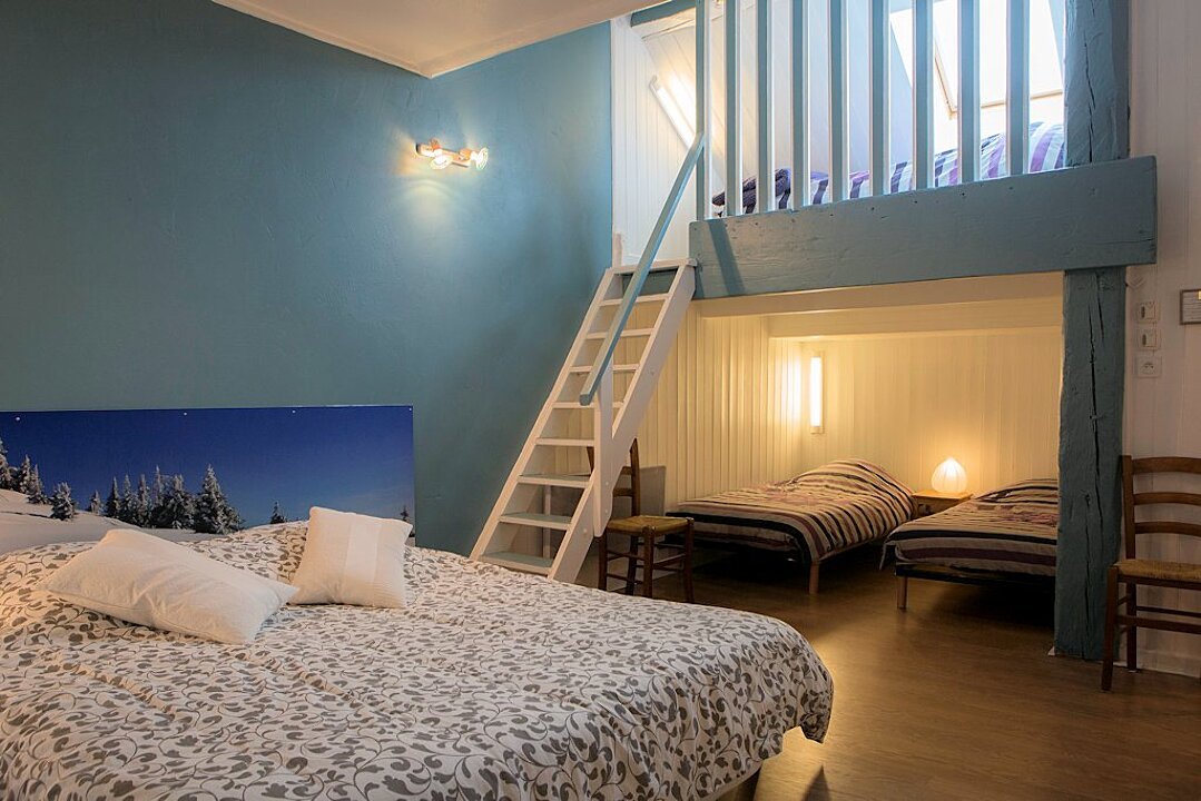 deux suites familiales (une chambre principale, salle de bain et WC, mezzanine avec 2 lits de 90 cm)