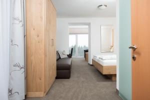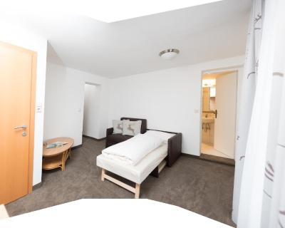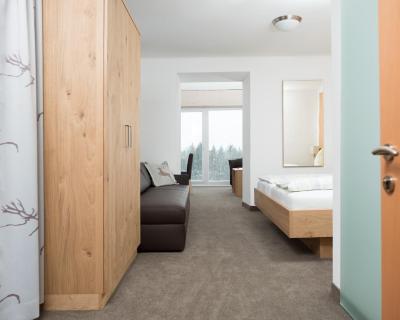 The Irlingerhof’s spa area features an infrared cabin and a steam bath. The new fitness centre offers panoramic views and can be used free of charge.