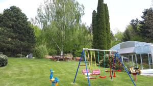 In summer, a covered outdoor pool with a sunbathing lawn is available.