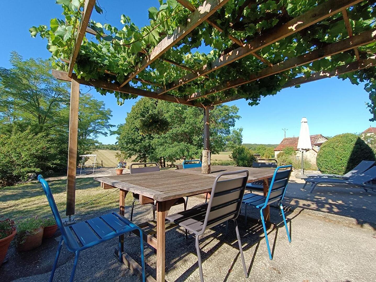 La maison et le jardin sont propices au repos : sous un arbre dans un hamac en contemplant la vallée ou dans un bon lit dans une chambre joliment décorée. Vous disposez d'une terrasse privée avec des transats, parasol et une petite piscine gonflable hors-sol, de quoi rafraîchir les esprits. Autrement, vous pourrez vous baigner ou profiter des activités nautiques dans la Dordogne.