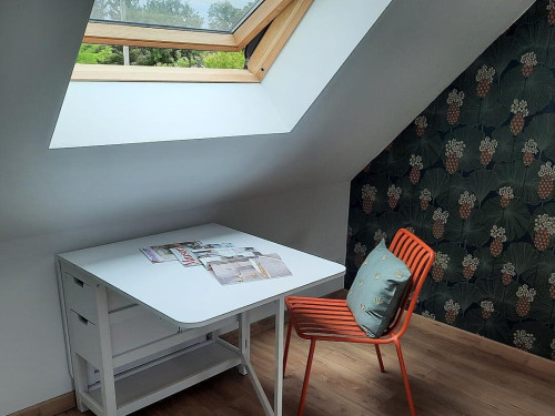 Terrasse sous tonnelle avec salon de jardin. Parking voiture, moto ou vélo sur place. Possibilité d'utiliser la cuisine à la demande.