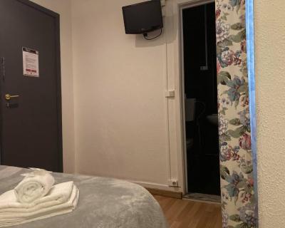 This simply decorated room features air conditioning, a cable TV and a private bathroom.
