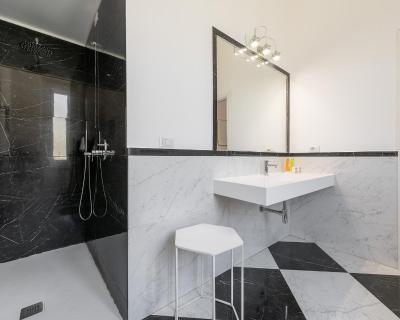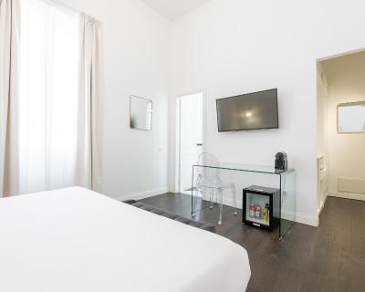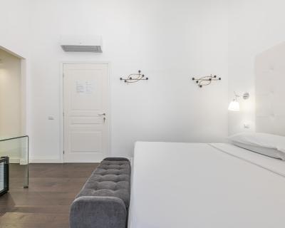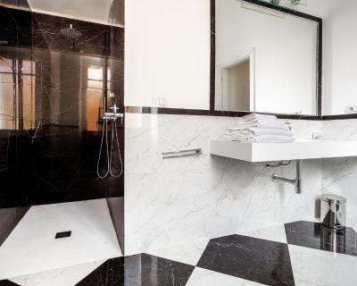 All decorated with wooden floors and black and white colours, the rooms feature a flat-screen TV and a private marble bathroom. Some have a balcony overlooking the street or the city’s castle.
