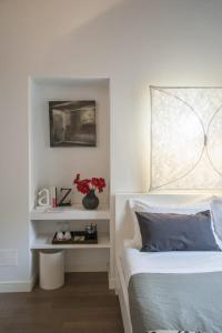 Les chambres avec salle de bains privative du Relais Fori Imperiali font partie d'un grand appartement doté d'une entrée élégante. Admirez les plafonds aux poutres apparentes rénovés ainsi que les œuvres d'art et la décoration originales et modernes.
