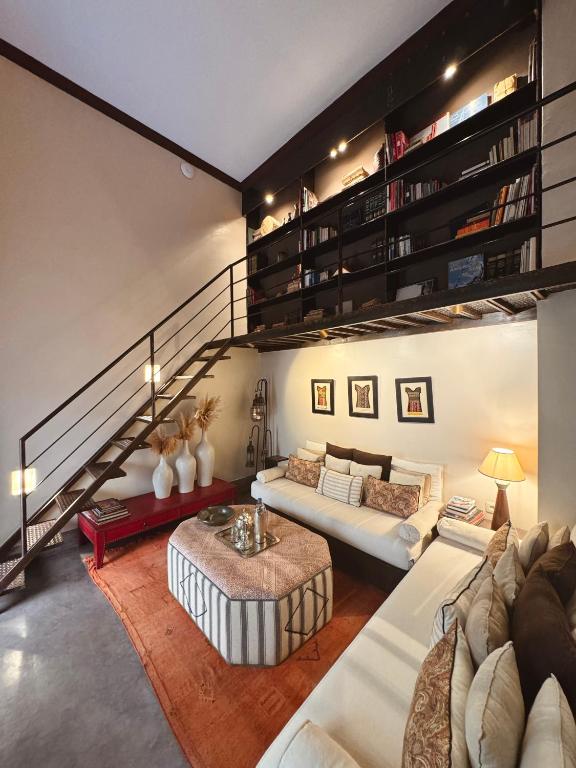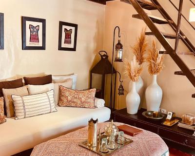 Située seulement 5 minutes à pied de la place Jemaa el-Fna, la maison d'hôtes Riad Abracadabra présente un élégant mélange d'architecture marocaine moderne et traditionnelle. Vous apprécierez un moment de détente dans les hamacs et les chaises longues autour de la piscine sur le toit, ainsi qu'au bar avec terrasse.