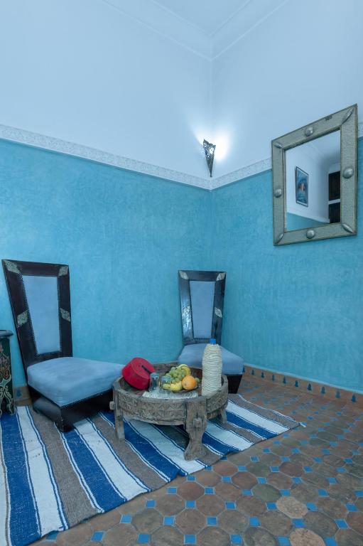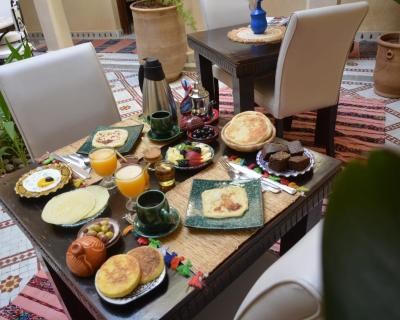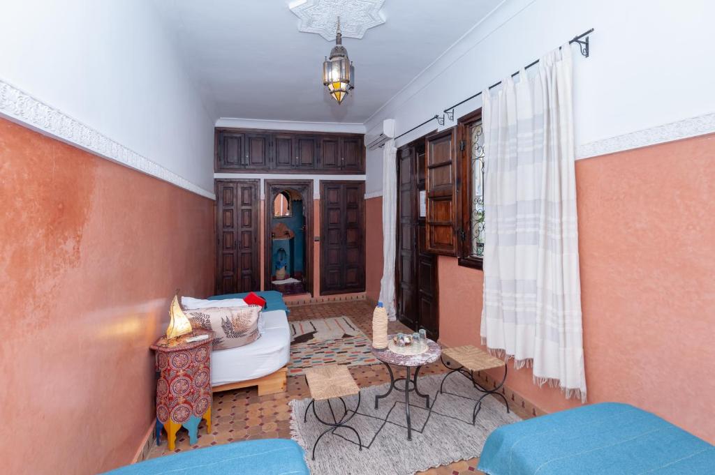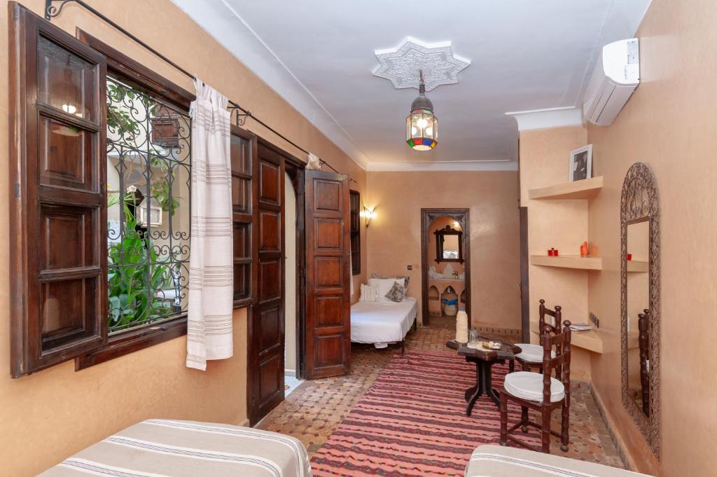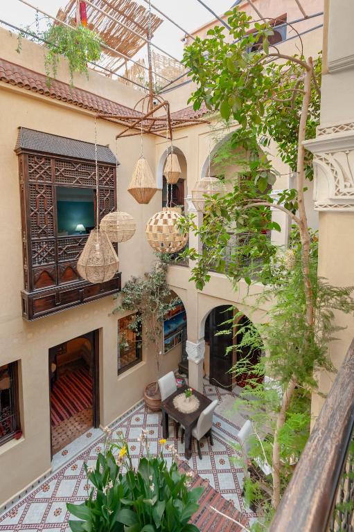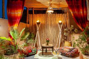 Le patio verdoyant de l'établissement est un lieu idéal pour se détendre sur des divans confortables et prendre un verre de thé après une journée passée dans la médina. Le Riad abrite également une salle avec cheminée ainsi qu'une terrasse et un solarium décorés de plantes et de fleurs, disposant de transats et d'une tente bédouine typique.