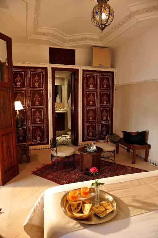 Vous pourrez déguster une cuisine marocaine au restaurant du riad et vous détendre sur la grande terrasse extérieure.