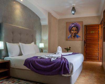 Featuring a free hot swimming pool on the rooftop and a traditional Moroccan lounge with a fireplace, this riad is a 15-minute walk from Jamaâ El Fna Square. The terrace offers views of the Atlas Mountains and medina.