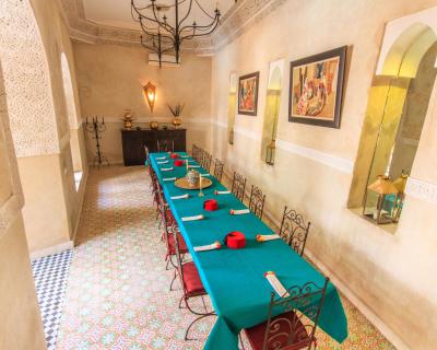 Le petit-déjeuner est servi tous les jours et le soir, vous pourrez déguster des plats marocains traditionnels préparés à partir de produits locaux. Les repas peuvent être pris dans l'élégante salle à manger ou dans la cour, près de la piscine.