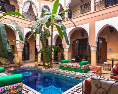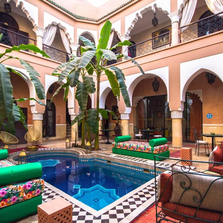 Situé dans le quartier Zaouia El Abbasia de Marrakech, ce riad dispose d'un hammam et d'une piscine entourée de palmiers. Vous pourrez prendre un thé à la menthe dans la tente berbère située sur le toit-terrasse.