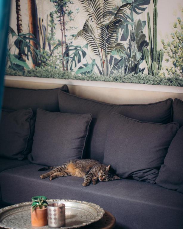 Vous trouverez 9 chambres raffinées et spacieuses de 25 m² dont 2 suites de 60 m² et 75 m². Chaque chambre est unique et décorée avec un mélange de style marocain moderne et traditionnel. Chaque logement comprend une literie haut de gamme ainsi qu’une salle de bains privative en marbre et tadelakt. Les chambres donnent sur le patio du Riad et la piscine.