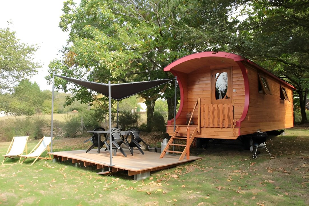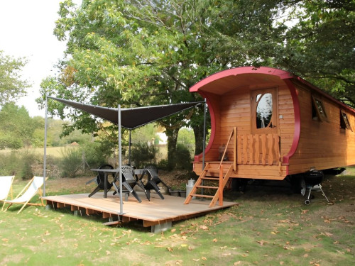 Notre Roulotte "La Vert-Dîne" Se situe à 30 km de Limoges et à 6 km de l'autoroute A20. Elle Peut accueillir jusqu'à 4 personnes. Elle est au fond de notre propriété à 300 mètres du lac de St Pardoux.
