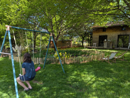 Elle se situe sur un terrain arboré avec terrasse et salon de jardin. Vous avez à disposition une plancha, mais aussi des jeux d'extérieur pour enfants. Elle est chauffée et isolée, pouvant donc être louée tout au long de l'année.