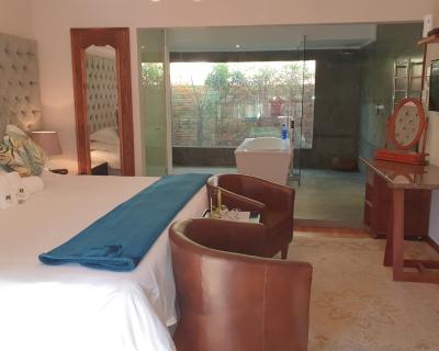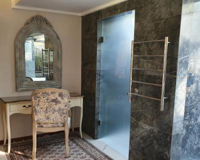 The guesthouse offers an array of amenities to offer our guests ease of stay. Each unit is equipped with air conditioning, both indoor and outdoor seating areas, satellite TV, a safety deposit box, minibar, hair dryer, and a lovely private bathroom featuring a walk-in shower.