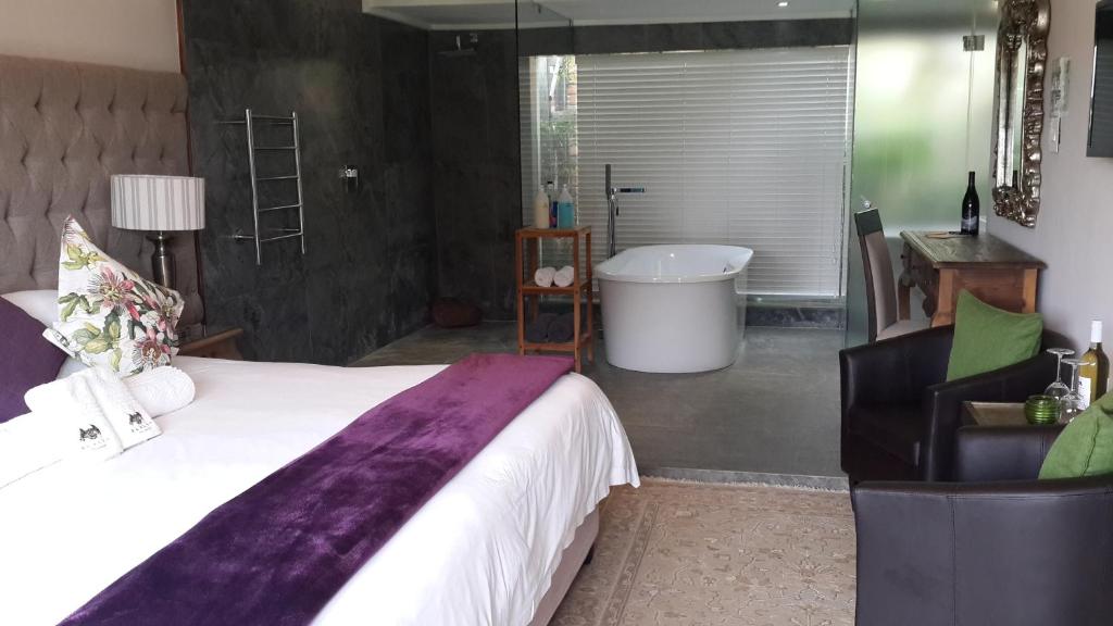 Nestled 8km from the heart of Stellenbosch, the enchanting Slaley Country House offers a picturesque escape, with breathtaking mountain vistas, complimentary Wi-Fi, and private gated parking. Guests are greeted by a serene pool, tennis court, garden panoramas, all a short distance down the road from the farm’s tasting room.