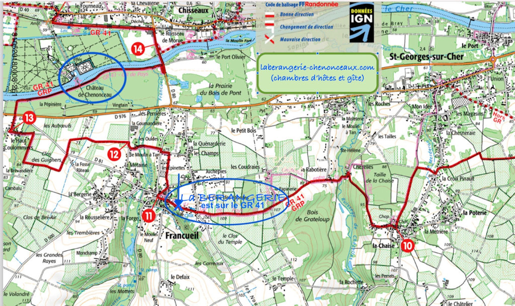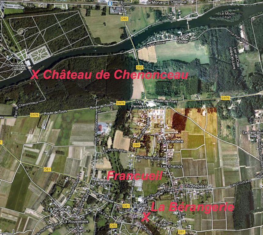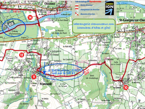 Allez jusque devant l'Eglise de Francueil, vous êtes presque arrivés, et téléphonez-moi, je vous guiderai pour les dernier 100 mètres.