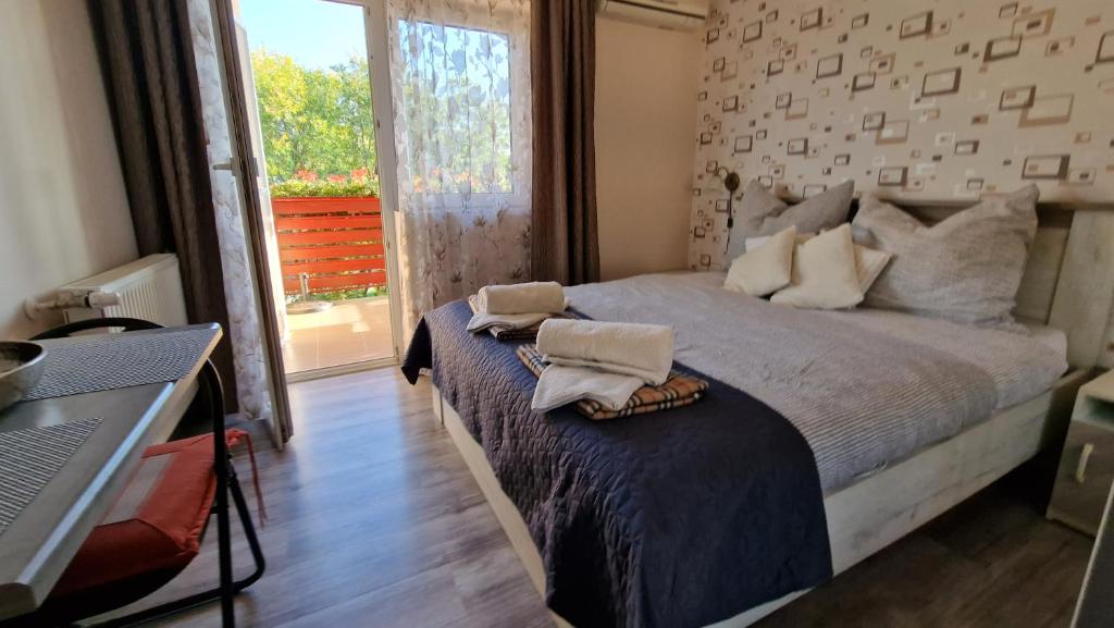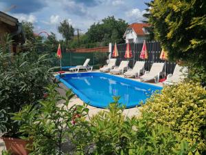 L’établissement Veronika Villa se trouve à Balatonfüred, à 500 mètres de ce lieu d’intérêt : Plage Esterházy. Il propose une piscine extérieure ouverte en saison, un jardin, une terrasse et un parking privé gratuit. Disposant d’une connexion Wi-Fi gratuite, cette maison d'hôtes est à respectivement 10 km et 50 km environ de : Abbaye de Tihany et Bella Stables and Animal Park. Vous trouverez sur place des animations en soirée et une cuisine commune.