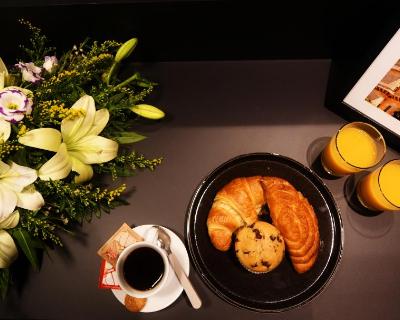 Un petit-déjeuner buffet est servi sur place.