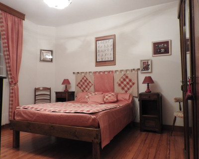 Cette chambre, un tantinet moderne, est d'un confort plus qu'acceptable. On y accède par un petit couloir après avoir traversé l'ancienne cuisine dans laquelle nous pénétrons par une entrée extérieure indépendante à l' étage. Dans la cuisine nous disposons d'une bouilloire et d'une cafetière, afin de préparer des boissons chaudes, et d'un réfrigérateur pour conserver des boissons au frais. De la documentation est à disposition afin d'informer sur les curiosités environnantes, les animations occasionnelles et les festivités programmées. Toujours de la cuisine, on accède au salon dans lequel nous trouvons des jeux de société, de la lecture et des B.D.