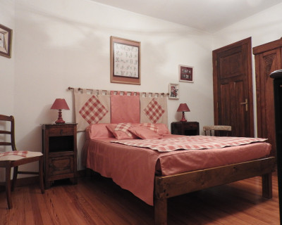 Cette chambre, à l'ancienne, est d'un confort plus qu'acceptable. On y accède par un petit couloir après avoir traversé l'ancienne cuisine dans laquelle nous pénétrons par une entrée extérieure indépendante à l'étage. Dans la cuisine nous disposons d'une bouilloire et d'une cafetière, afin de préparer des boissons chaudes, et d'un réfrigérateur pour conserver des boissons au frais. De la documentation est à disposition afin d'informer sur les curiosités environnantes, les animations occasionnelles et les festivités programmées. Toujours de la cuisine, on accède au salon dans lequel nous trouvons des jeux de société, de la lecture et des B.D.