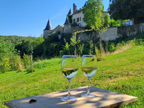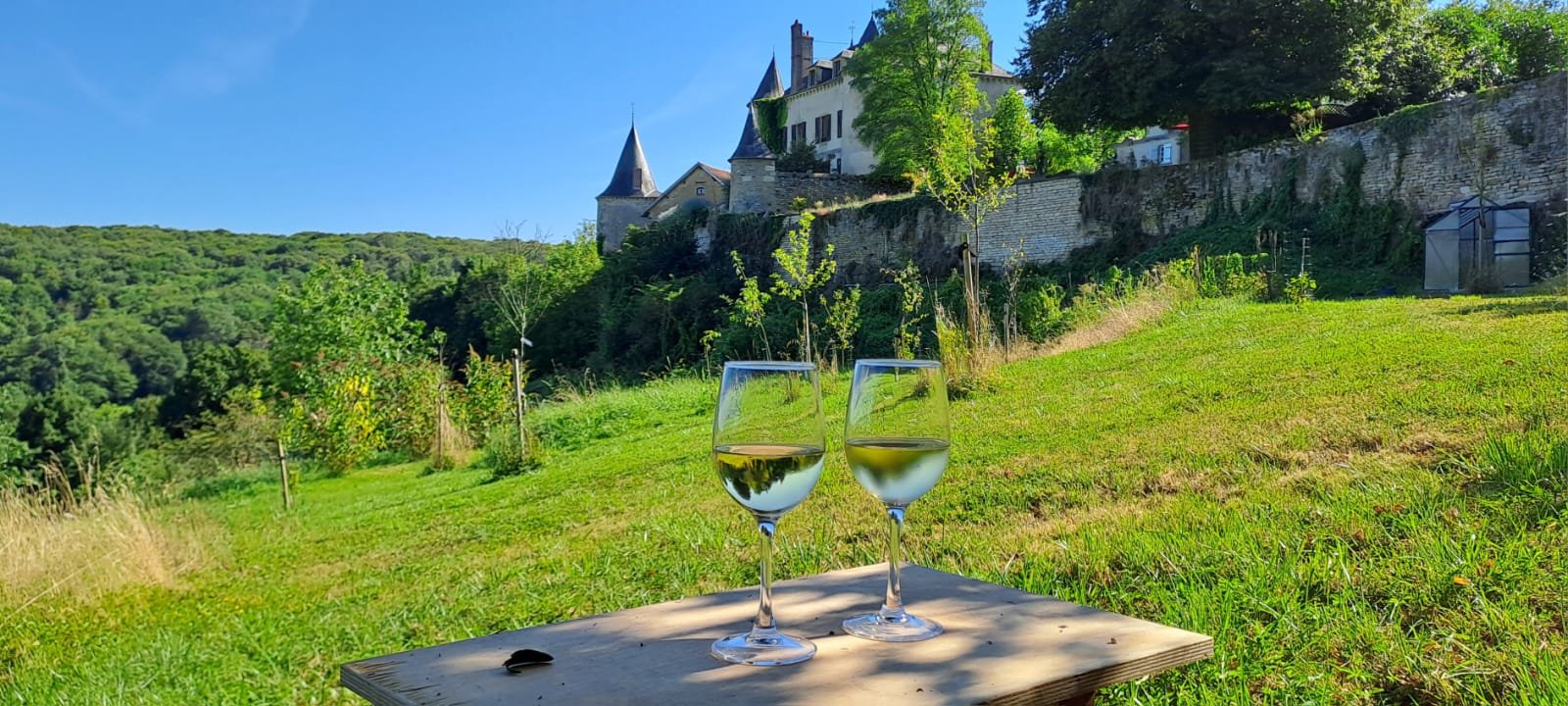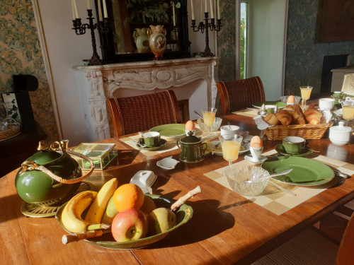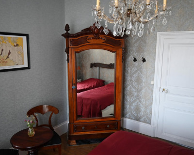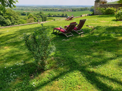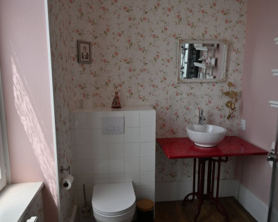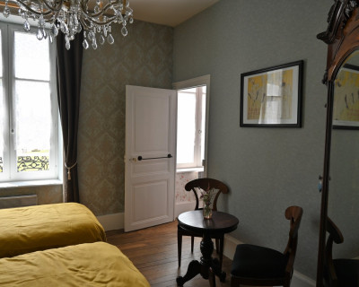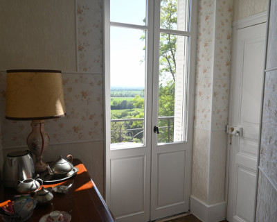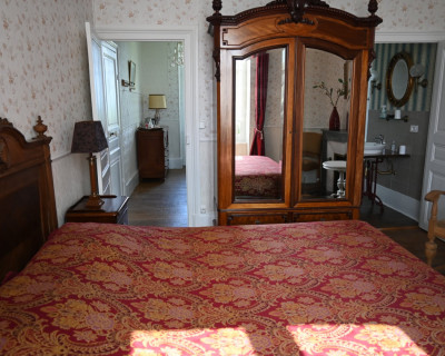La chambre-a-coucher est situé à l'avant de la maison. De cette partie, vous avez une vue sur la tour du château médiéval local, la place du village de Champallement et sur la mare du village, où dans le passé le bétail buvait et la lessive était faite.
