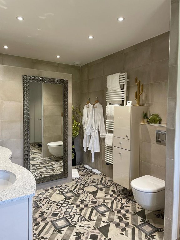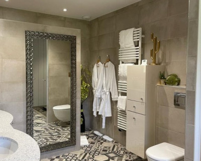 Elles sont toutes équipées de douches à l'italienne, WC, sèche-serviettes électrique, climatisation, Wifi, Frigo coffre fort