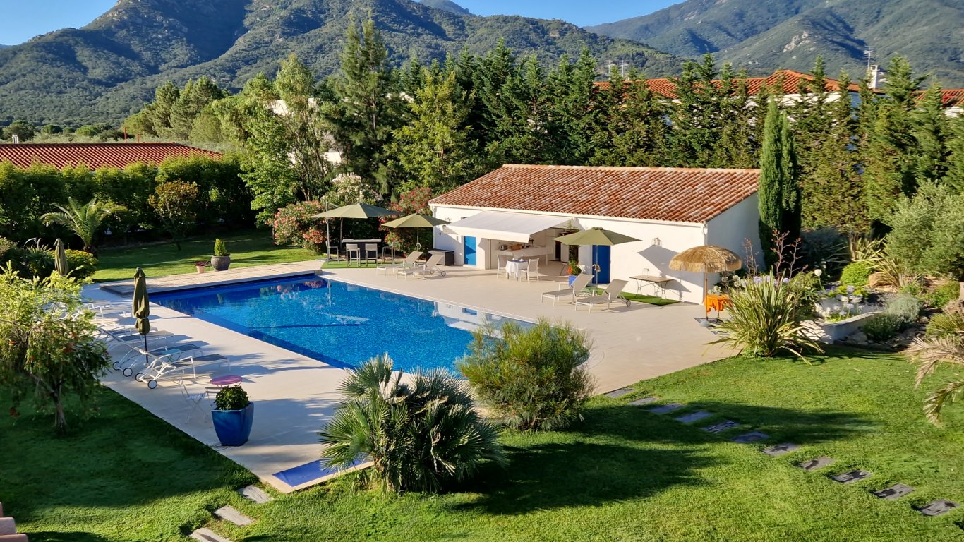 À la sortie du village de Sorède, au pied des Albères, villa dans un parc de 6000 m² arboré.