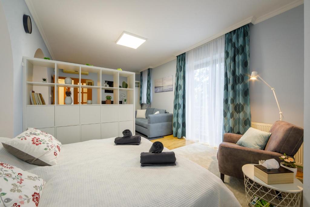 Le parc de la ville et son aire de jeux sont situés juste à côté du bâtiment. Vous trouverez des commerces et des restaurants à seulement 50 mètres de la Villa Muzsa Deluxe.