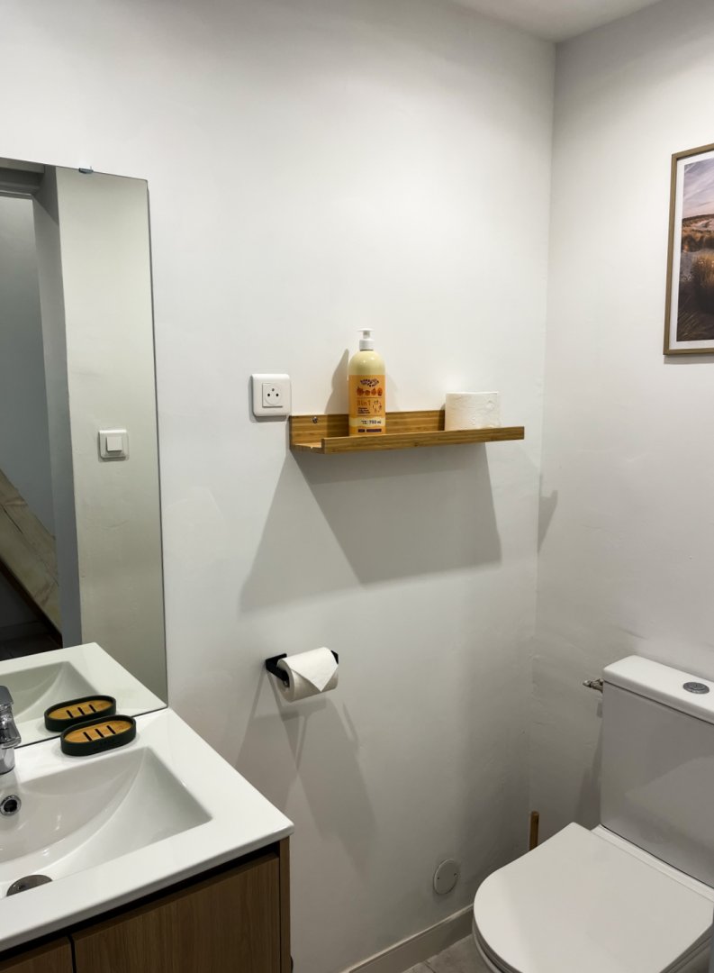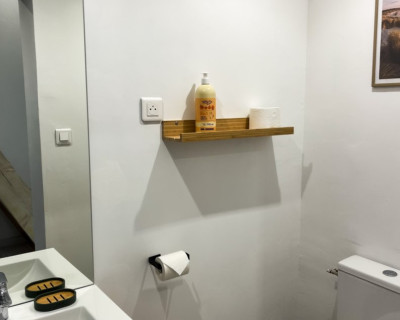 Les draps de douche et serviettes de toilette sont fournis, papiers toilettes, sèche-cheveux, et petits produits savon gel-douche invités.