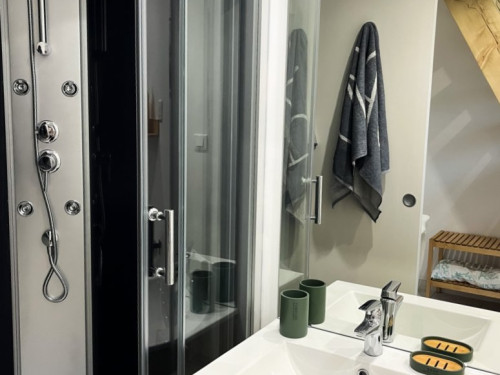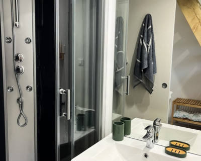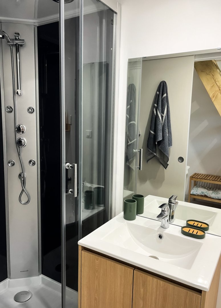 Sa salle de douche commune aux 2 chambres avec douche - vasque et wc.