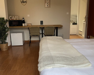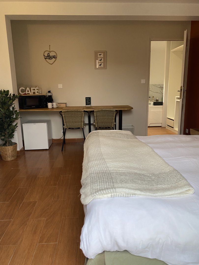 Le plus de cette suite + est sa pièce de vie - table et petite cuisine avec frigo pour se faire à manger.