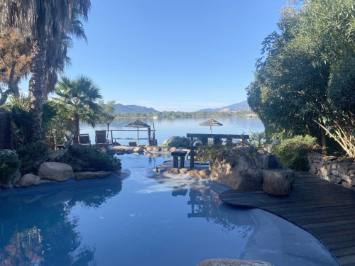 Maranatha Porto Vecchio est une résidence de vacances, pieds dans l'eau, sur le golfe de Porto Vecchio dotée d'une magnifique vue sur la mer et sur la vieille ville possédant sa plage privée, 2 piscines chauffées, pirogues de mer, pédalo, corps mort.