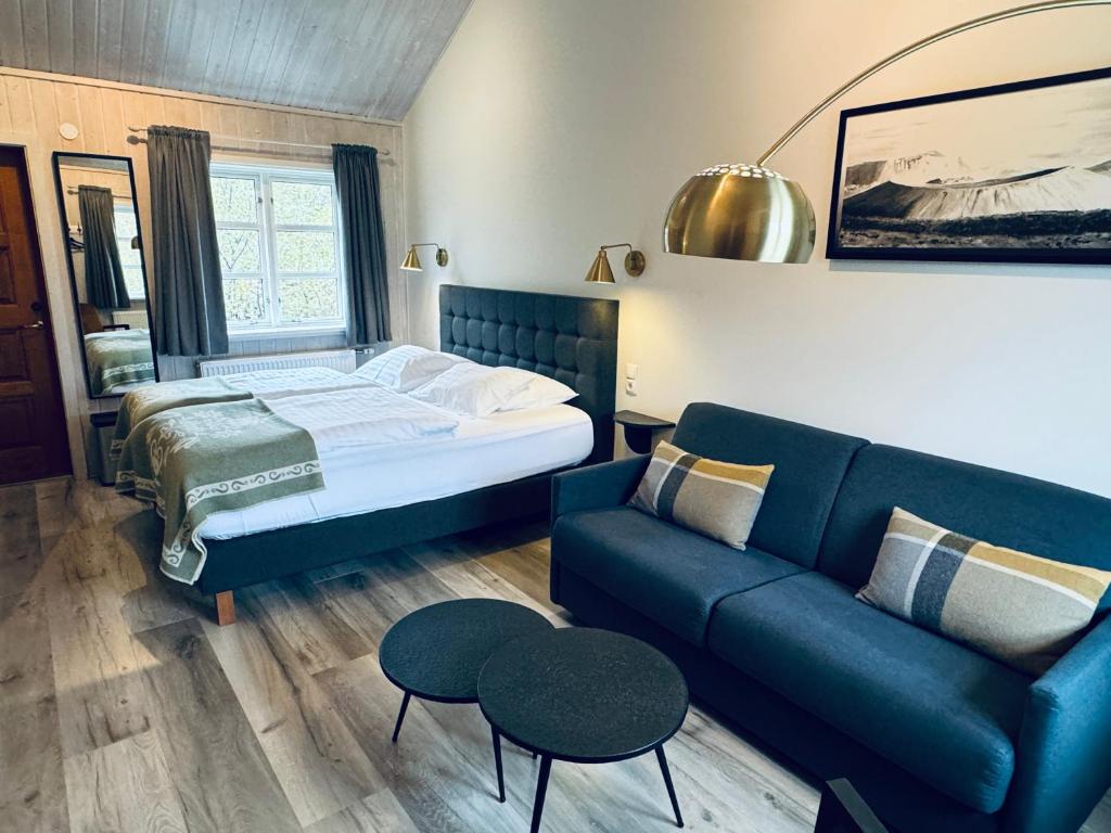 Moyennant un supplément, vous pourrez vous détendre dans les eaux géothermiques des bains naturels de Myvatn d'une superficie de 5 000 m² situés à proximité. La maison d'hôtes abrite également une ferme avec des animaux comme des vaches, des moutons et des chevaux.