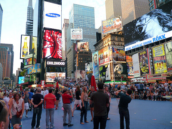Times Square, nommé d'après l'ancien emplacement du siège du New York Times, est un quartier de la ville de New York, situé dans le borough de Manhattan. Centré sur la 42e rue et Broadway, il comprend les blocs situés entre la Sixième et la Neuvième Avenue d'est en ouest, et entre les 39e à 52e rue du sud au nord. Il constitue la partie ouest du quartier commerçant de Midtown. Surnommé "Crossroads of the world", Times Square est l'une des "places" les plus célèbres et les plus animées au monde, à l'instar de Shibuya à Tokyo ou Piccadilly Circus à Londres : environ 365 000 personnes y passent par jour.